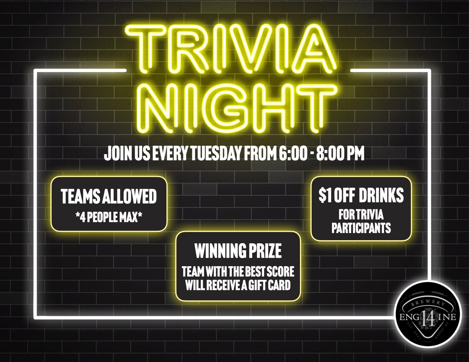 Engine 14 Brewery is a firehouse themed brewery located in Naples, NY, featuring a retired truck from the Rochester, NY city fire department.